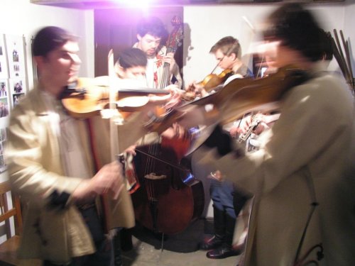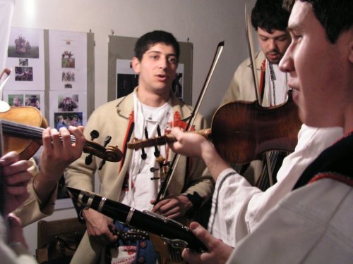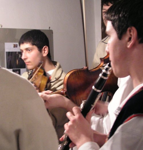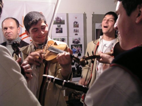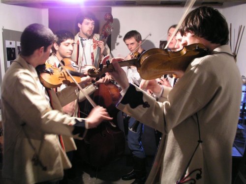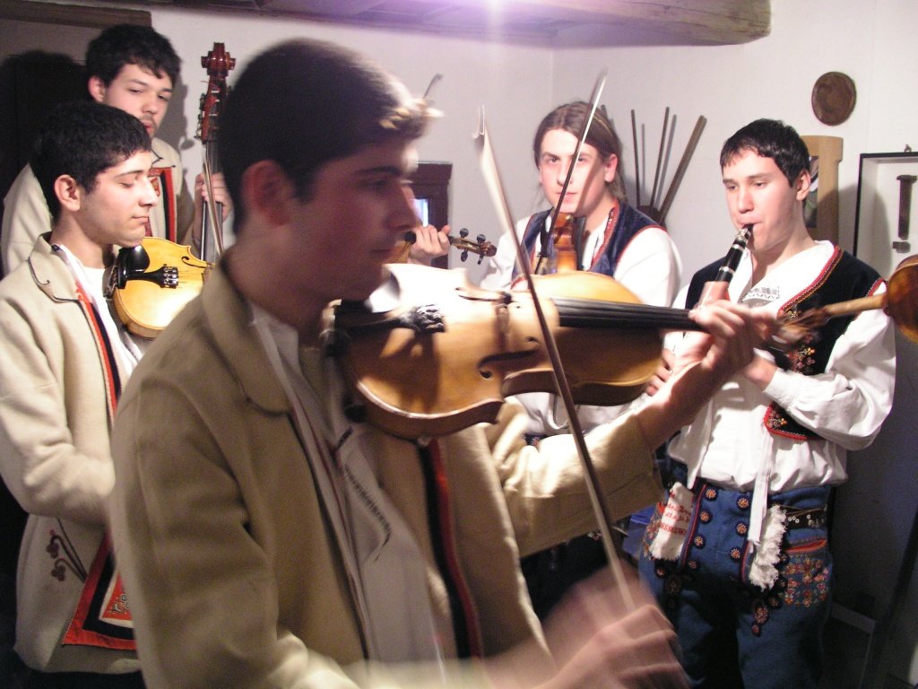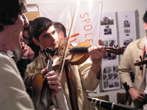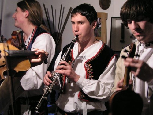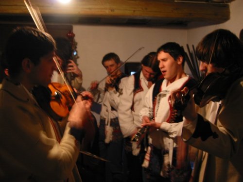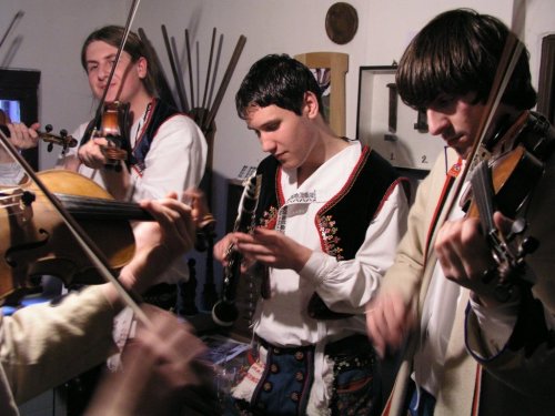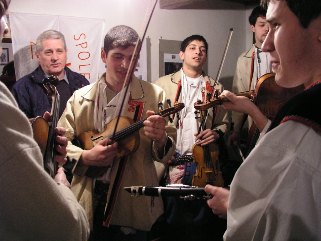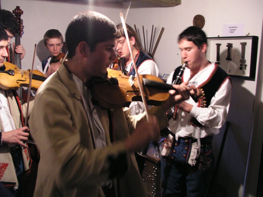 V popředí primáš Petr Kubík, v pozadí zleva horňácký zpěvák Martin Čambal