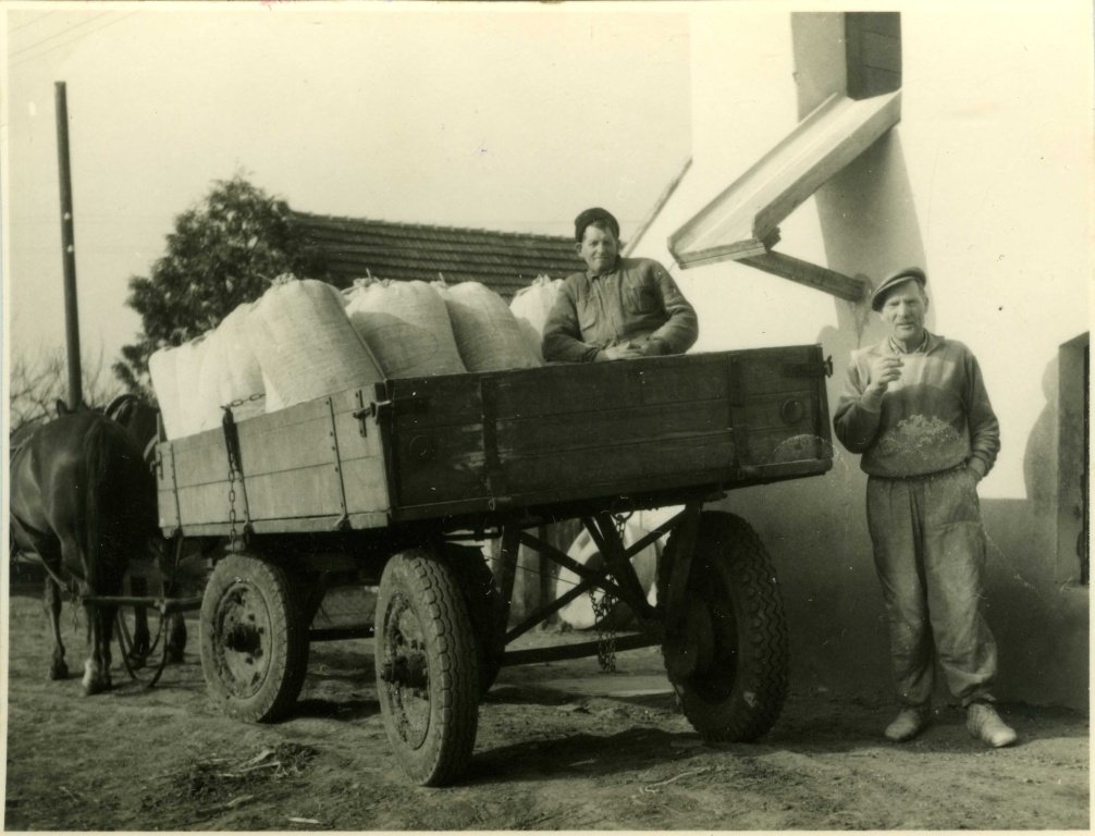 Ladislav Dostál šrotoval obilí pro JZD do roku 1962. Na vlečce Josef Hlaváč