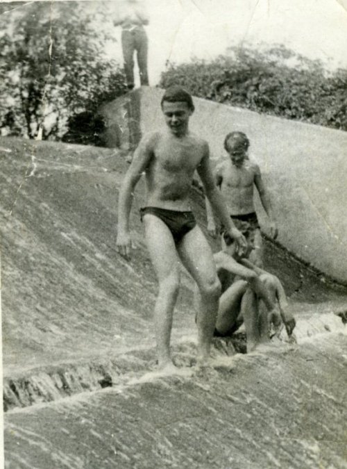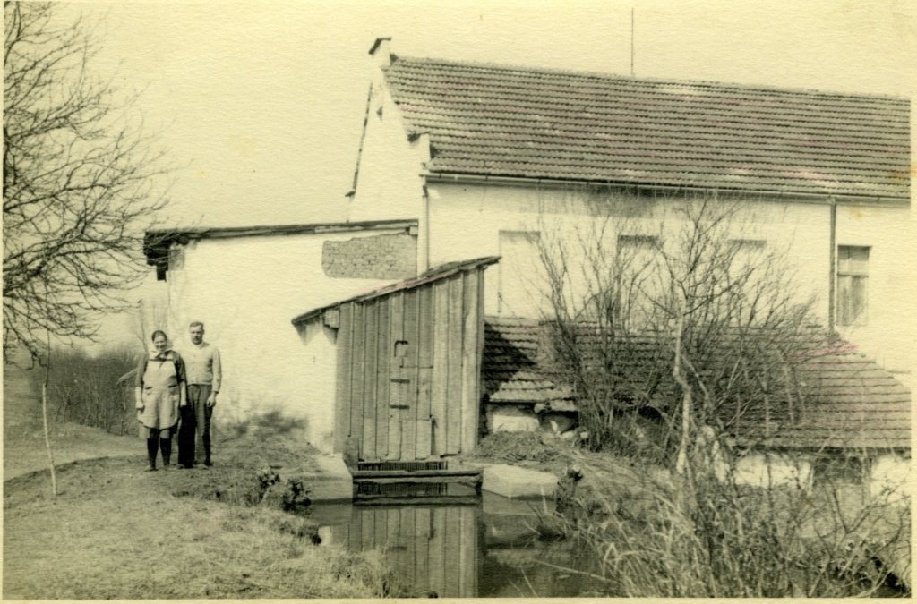 Manželé Dostálovi u mlýnského náhonu roku 1942