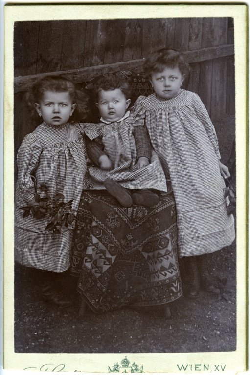 Tři nejstarší dcery manželů Uhlířových. Zleva Libuše (*1898), Jarmila (*1901) a Božena (*1899)