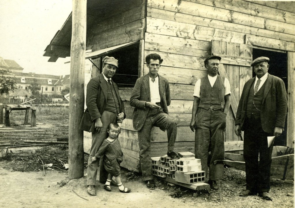 Zprava stojí Václav Uhlíř, který se podílel v roce 1924 na stavbě Sokolovny