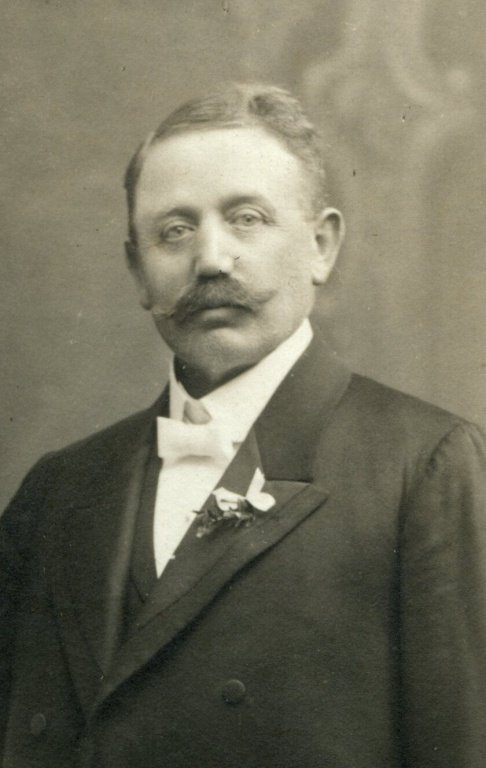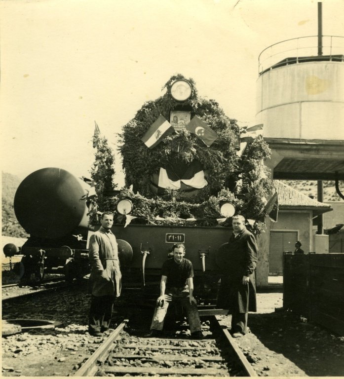 Zprava stojí Václav Uhlíř u lokomotivy se kterou vezl perského šáha při svatebním obřadu
