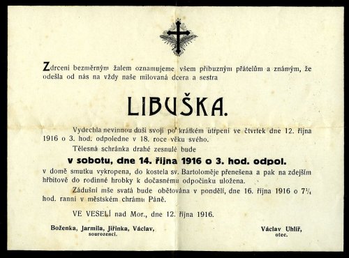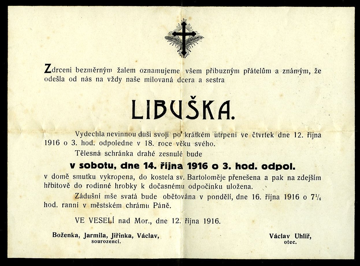 Libuše Uhlířová *6.5.1898 +12.10.1916