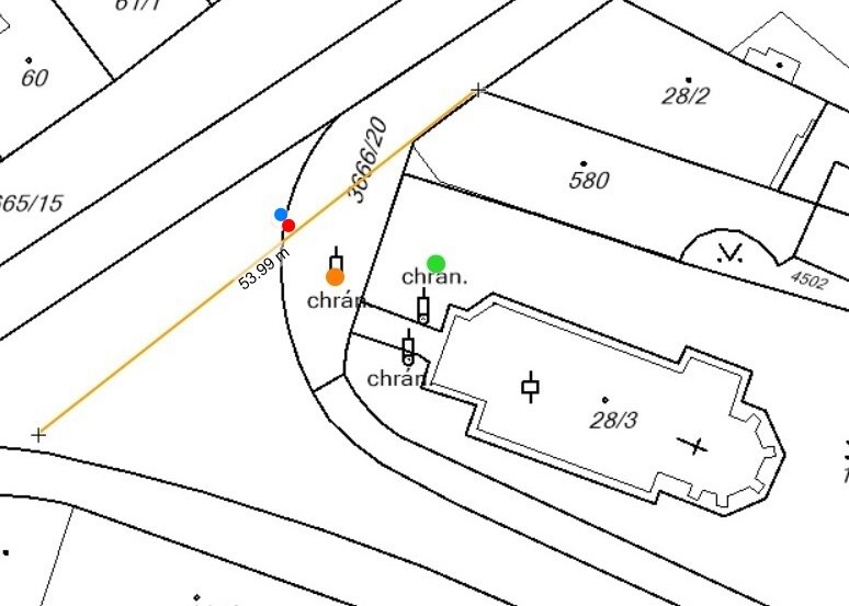 Do současného katastrálního plánu je žlutě vyznačeno oplocení zrušené roku 1938. Červeným puntíkem je označeno původní umístění Krämerova kříže, modře posunutí z roku 1923, oranžově umístění kříže v letech 1938-1981 a zeleně je vyznačeno současné umístění Krämerova kříže