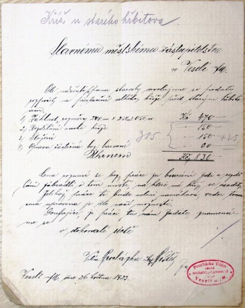 Toho pískovcového kříže stojícího před kostelem Panny Marie jste si možná ani nevšimli. Stojí zde vedle barokní sochy svatého Vendelína a svatého Floriána, a má zajímavou historii. Roku 1828 jej nechala postavit Anna, vdova po mlynáři Tadeáši Krämerovi. Kříž stál u vstupu na starý hřbitov, který se nacházel kolem kostela Panny Marie. Ten starý hřbitov byl roku 1834 zrušen, ale Krämerův kříž zde nehnutě stál až do roku 1923, kdy Okrašlovací spolek rozhodl posunout kříž o 120 cm k silnici, aby bylo možno zřídit nový tratuár mezi křížem a ohradou bývalého hřbitova. Přeložení kříže provedl kameník Vilém Procházka za 500 K. Základ pro kříž zřídila obec vlastním nákladem.1)
