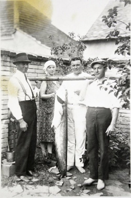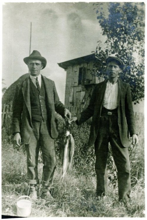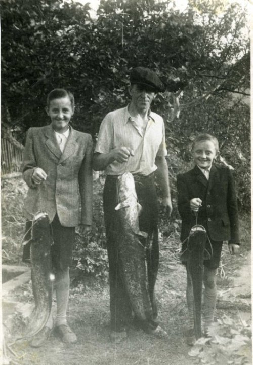 Zprava Petr Pavka (*1881, zvaný Džomol) se syny Petrem (*1905), Frantou (*1917) a Karlem (*1919). Pavkovi byli nejen rybáři, ale provozovali také přívoz