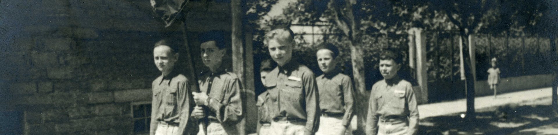 Ročník 1933. Děkan Dominik Vicenec, učitel Jan Procházka a s brýlemi učitel Kašík. Zdeněk Hlobil vzadu druhý zleva. První zprava sedí Jančařík, druhý Milan Nejezchleba. V druhé řadě třetí zleva Rosťa Nejedlík, čtvrtý zleva Olda Koryčanský. Sedmý zleva v poslední řadě Zdeněk Odstrčilík